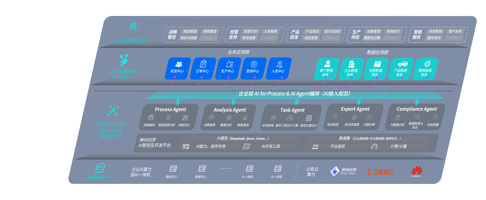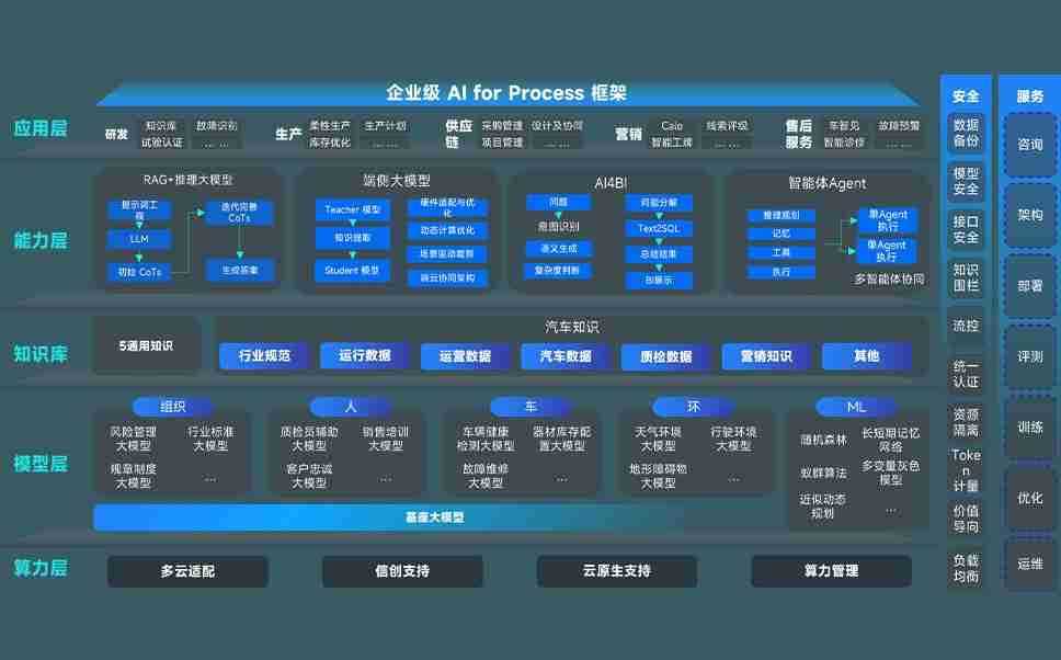 端到端的一站式AI工作空间深度融合了从企业战略规划到日常经营的全流程业务板块,,定向解决车企内部领域多、、部门多、、、、链条长、、、、场景碎片化等难题,,,,支持车企快速构建以AI为核心的生产力写作体系,,,,实现任务执行与AI能力的无缝集成与交互